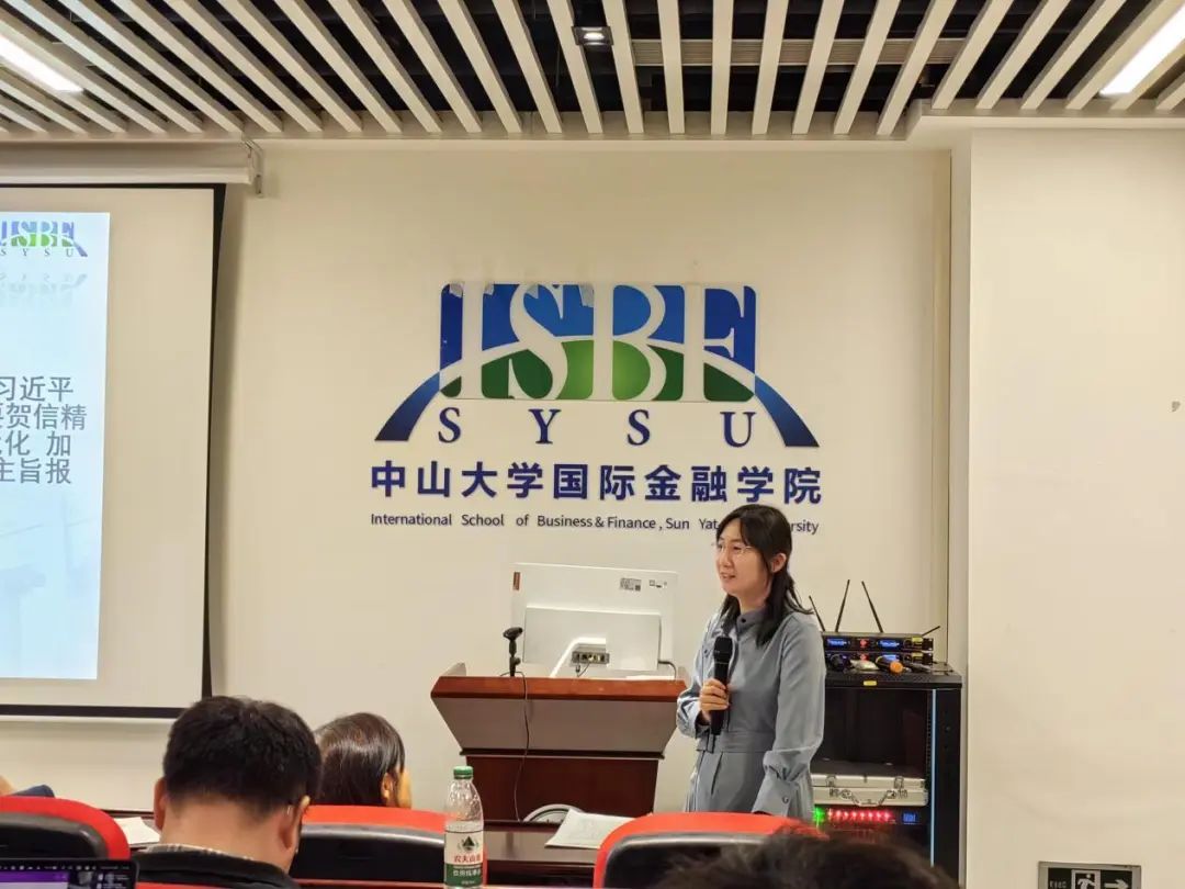 会上,学院党委书记王彩萍教授首先传达学习了高松校长《学习贯彻习近平总书记致中山大学建校100周年重要贺信精神 推进学校治理体系和治理能力现代化 加快建设中国特色世界一流大学》的大会主旨报告。高松校长的报告深刻阐述了推动大学治理体系改革是建设中国特色世界一流大学的内在要求,学校治理体系的现状与存在问题,以及如何推进治理体系改革,提升治理能力,促进学校事业高质量内涵式发展的思路与举措。接着,传达学习了校党委朱孔军书记《深入学习贯彻习近平总书记重要贺信精神 以高质量党建引领学校治理现代化》讲话精神。朱孔军书记强调,要深入学习贯彻习近平总书记重要贺信精神,突破学校发展瓶颈,更新观念、解放思想,以足够的胆识和智慧深化改革,推动学校治理体系和治理能力现代化,努力实现学校“由大到强”的系统性跃升,服务国家重大战略和粤港澳大湾区发展需要,加快建设中国特色世界一流大学,为建设教育强国、推进中国式现代化作出新的更大贡献。最后,传达学习了校党委副书记、纪委书记、国家监委驻中山大学监察专员刁振强书记廉政警示教育内容。王彩萍书记指出,学院将以习近平总书记重要贺信精神为指引,以习近平新时代中国特色社会主义思想凝心铸魂,传承红色基因,坚持为党育人、为国育才,坚定不移落实立德树人根本任务,聚焦国家重大战略和粤港澳大湾区发展需要,贯彻落实学校秋季工作会议精神,以高质量党建引领学院事业高质量发展。