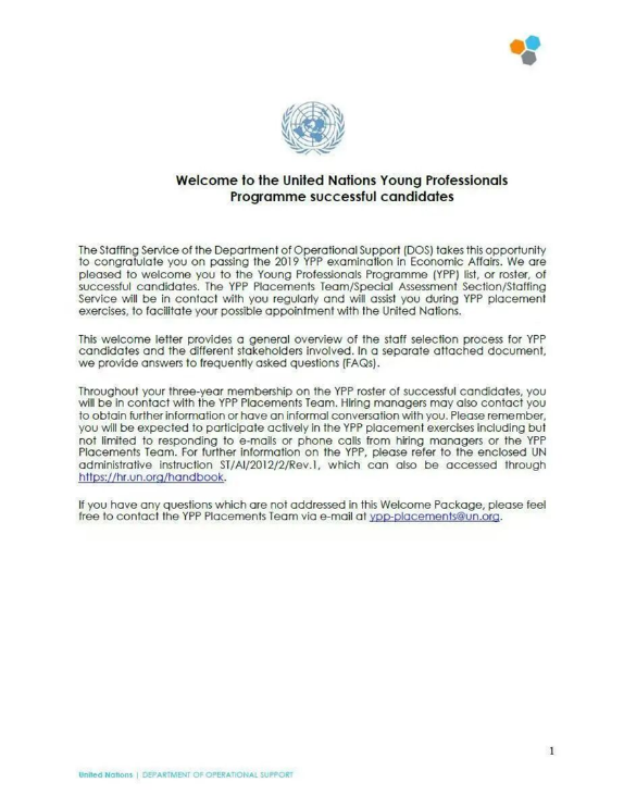 其实这条职业路径一直存在,不少同事从上世纪90年代就通过相关信息进入了联合国工作,所以关键在于要主动收集信息、解开迷惑、清晰规划,这已经成功了一半,剩下的就靠执行与努力。联合国相关考试难度很大,要从全球众多优秀竞争者中脱颖而出并不容易。大家现在看到的都是我实现后的成绩,但是这背后也有一两年的学习和准备,现在回想起来,我还是很感谢当初自己的努力与坚持。