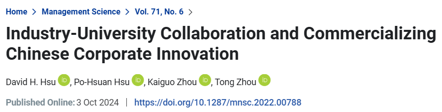 周彤于Management Science上发表论文