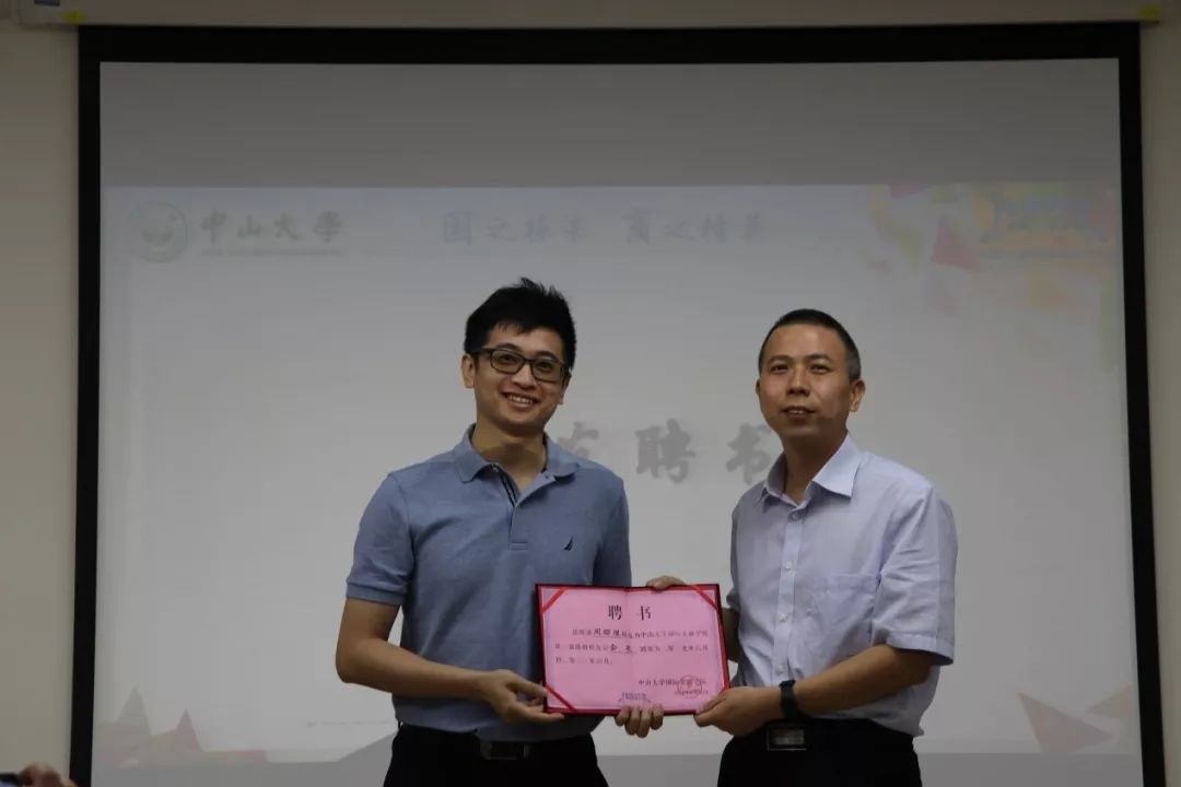 (黄新飞院长为太阳集团tyc86珠海校友会第一任会长周昭煜颁发聘书)